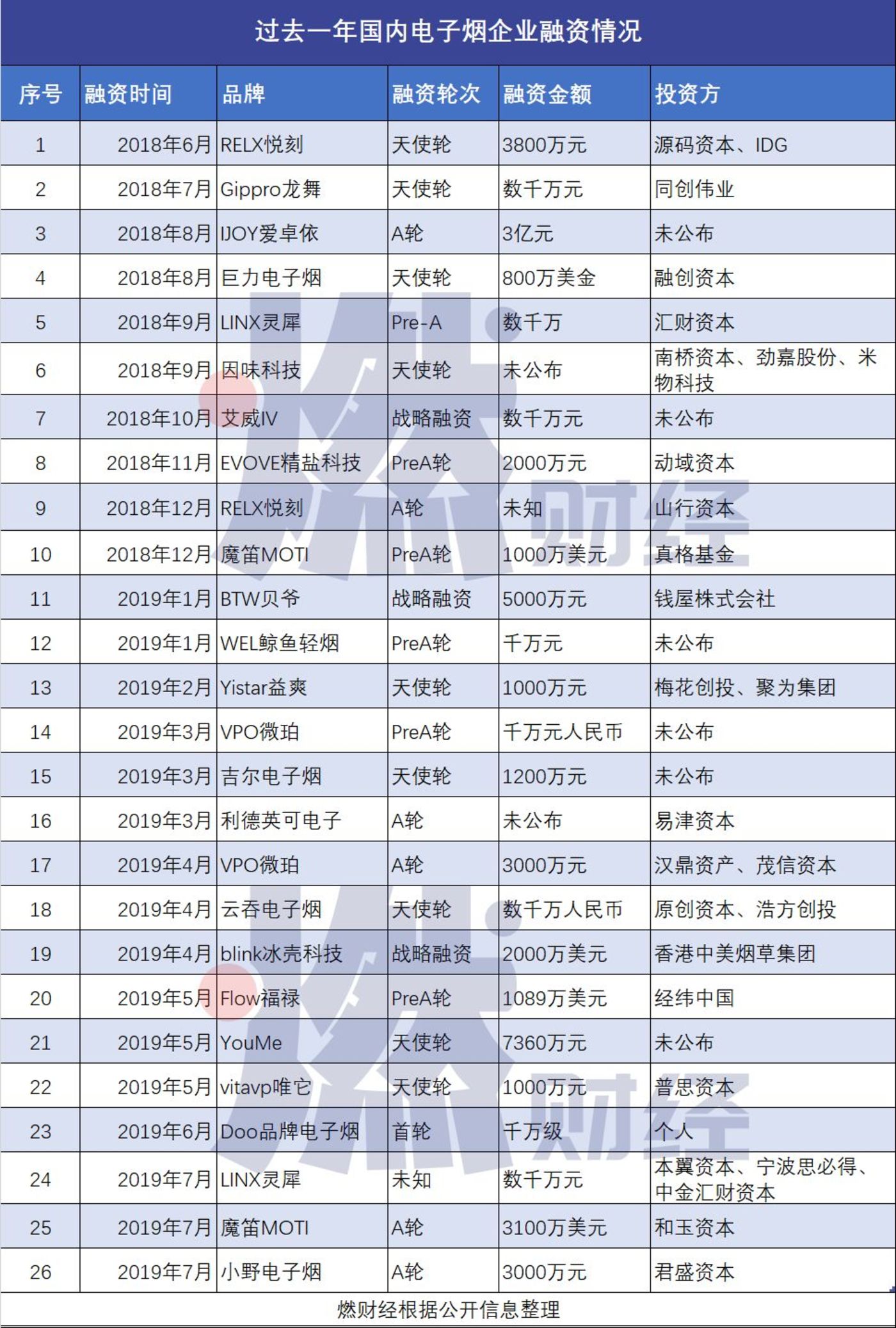 過去一年,國內電子煙企業融資情況,製圖 / 燃財經