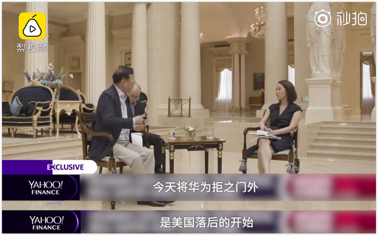 華為首席執行官任正非在專訪中與雅虎財經的藤田明子(Akiko Fujita)坐下來談話。他認為美國決定拒絕他的公司實際上是一個嚴重的錯誤,會適得其反。