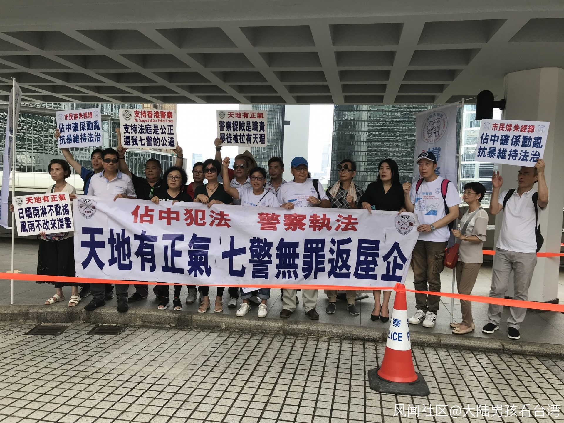 上午10時30分許,提出上訴的7名警察先後抵達法庭。法庭外,可以看到有香港市民到場拉出橫幅,上書“佔中犯法 警察執法”、“天地有正氣 七警無罪返屋企”等口號聲援七人。香港媒體特別指出,沒有看到有“反警”分子出現。