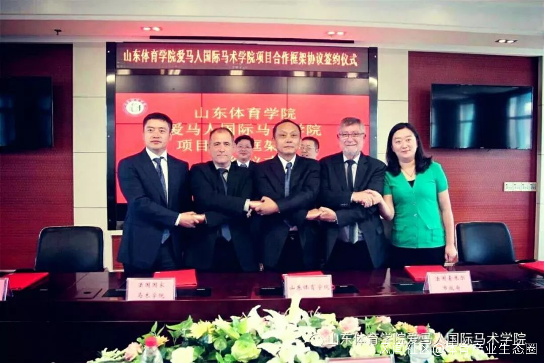 2017年5月24日,山東體育學院、法國國家馬術學院和愛馬人馬術俱樂部在濟南校區共同成立山東體育學院愛馬人國際馬術學院,在國內率先開啓馬術運動的本科教育先河。