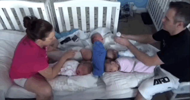 五個寶貝總是要哭一起哭,要餓一起餓,兩個大人根本照顧不過來。