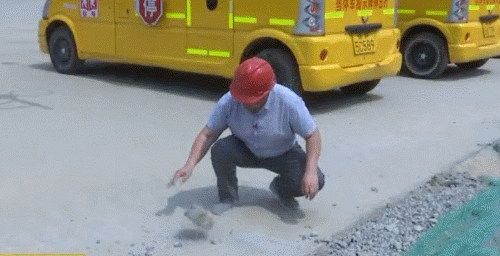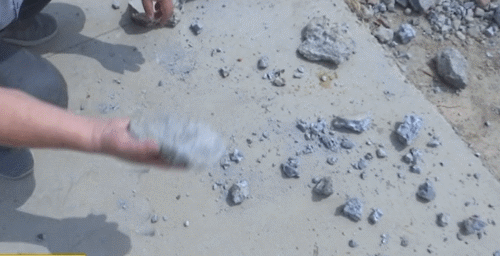 問題水泥張光啓又隨手拾起從其它地方打掉的舊水泥塊,往地上一摔,結果還是一個整塊,水泥的凝固度顯得很結實。