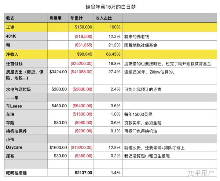 假如我們一家在硅谷(相當於北上廣深)的公司工作了,年入15萬綠花花的美元(家庭收入水平全美前5%,在硅谷屬於有錢的25%),生活應該很爽吧。 ——應該很爽,如果是單身狗的話