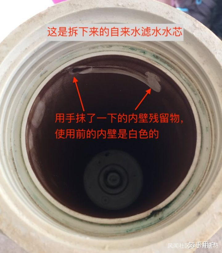 換下來的過濾芯外壁。 內壁的紅色物質不知道是什麼,但是洗乾淨的內壁是純白色的。