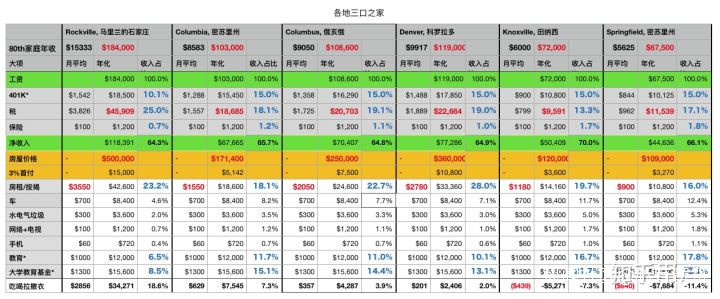 實際生活肯定不會是負值,所以Knoxville和Springfield的人需要從教育和大學教育基金裏面摳錢出來供日常生活。損失的是自己孩子未來。