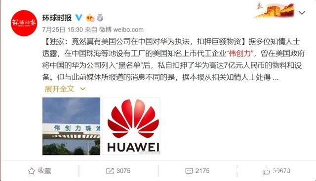 環球時報:美國知名上市代工企業偉創力,曾在美國政府將中國的華為公司列入“黑名單”後,私自扣押了華為高達7億元人民幣的物料和設備。一石激起千層浪,偉創力這家公司是自絕於中國市場嗎?