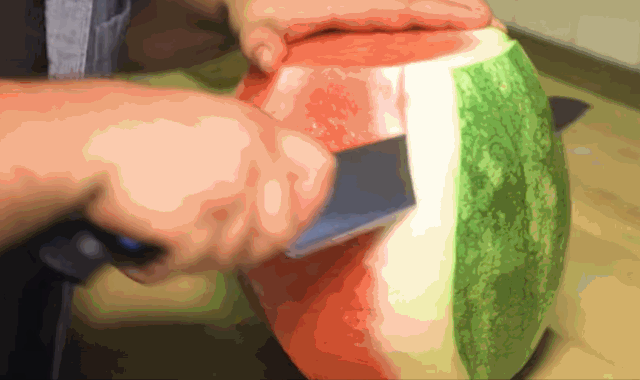 但這個東西,其實,哈哈哈,就是夏天裏最常見的西瓜啦!發明這道菜的,是紐約東村某餐廳的老闆維爾·火糯味滋(Will Horowitz)。據説,他先把西瓜剝出瓤子、剔除瓜子,再用鹽和一種植物的灰燼把西瓜包裹起來,醃製數天,然後再用和燻火腿一樣的方式煙燻幾個小時。做出來的“西瓜火腿”不僅外觀神似,入口之後的第一感覺也是鹹、鮮、韌,但很快又變成了甜、脆、沙,簡直就像是舌尖上的“冰火兩重天”。