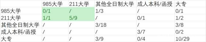 這批父母考上大學、大專的比例和當前的學生考上211大學的比例都差不多,都是3%左右,我們可以將全體分子(子女考上211或985大學)之和去除以全體分母之和(父母水平均在大專或以上),然後我們可以欣慰地看到: