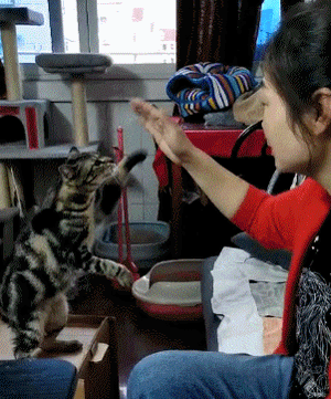 另外呢,**三三有狗一樣的行為習慣。**光能遛這一點,就勝過大多數貓了,平時我們在家,它會跟進跟出。如果我們進了浴室洗漱,它就會非常擔心,一定要跟進來親眼確認,若見到我們渾身濕漉漉,會急得“喵喵”叫,可能是操心我這麼大了還不會自己舔毛,也有可能是怕我在浴室裏淹死自己。