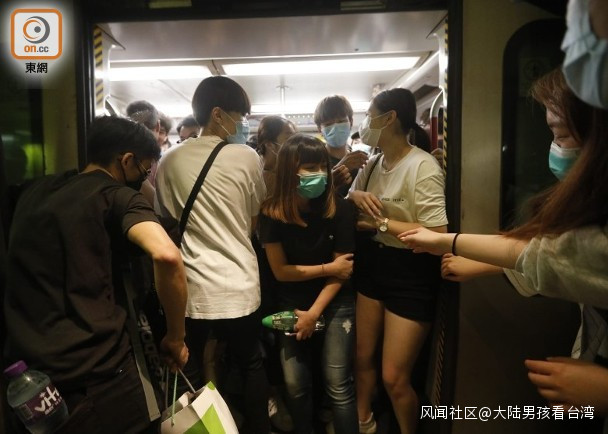 不過到7時45分許,就陸續有20餘名戴着口罩的黑衣者站在列車門附近,阻礙車門關閉。港鐵職員不斷用喇叭喊話“請勿阻礙車門關閉”,不過這些黑衣者沒有予以理會。
