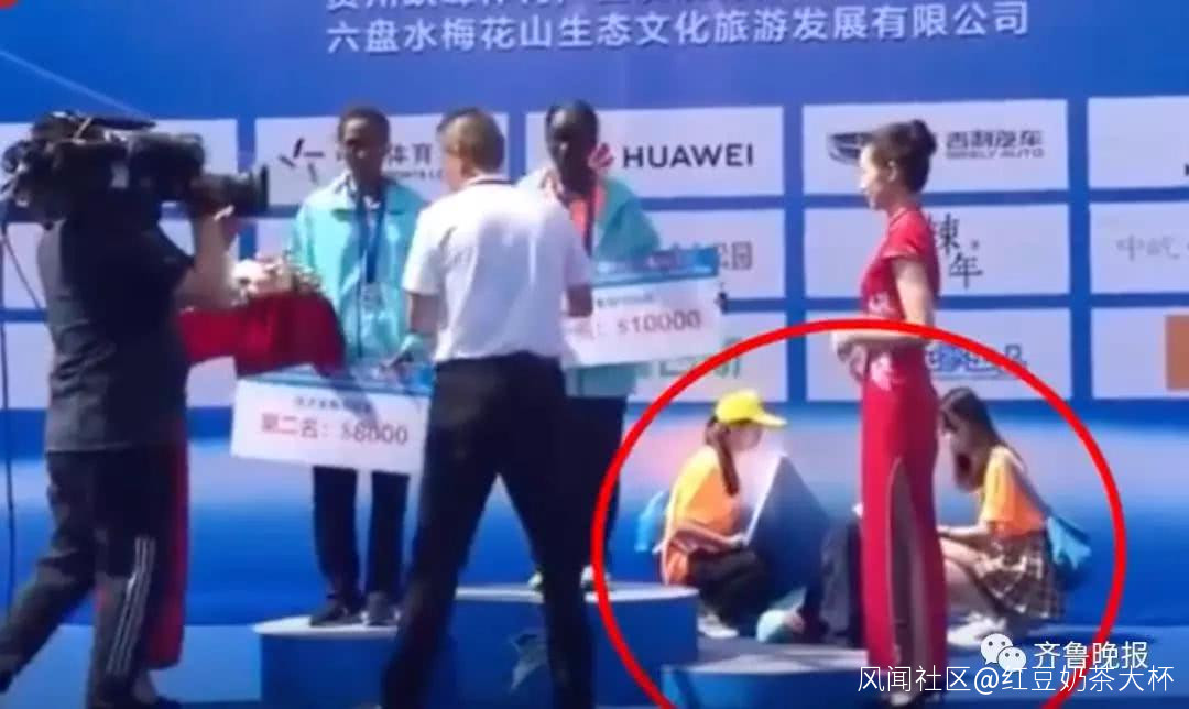 7月28日,貴州六盤水夏季國際馬拉松比賽後,舉行女子全程前三名頒獎典禮時,第三名選手體力不支暈倒在頒獎台上。按照常理這種突發情況應該被優先處理,但接下來卻發生了,讓很多人都不能理解的一幕: