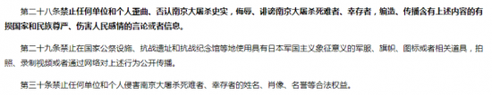 ▲《南京市國家公祭保障條例》部分內容(江蘇人大網)