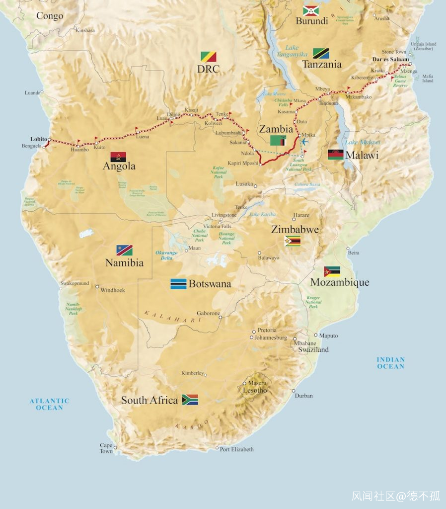 上世紀70年代由中國政府援建的坦贊鐵路和本世紀初由中國企業承建施工的本格拉鐵路來了一次“握手”,標誌着坦桑尼亞、贊比亞、剛果民主共和國和安哥拉四國鐵路首次實現互聯互通,見證了大西洋與印度洋之間國際鐵路大通道的形成。