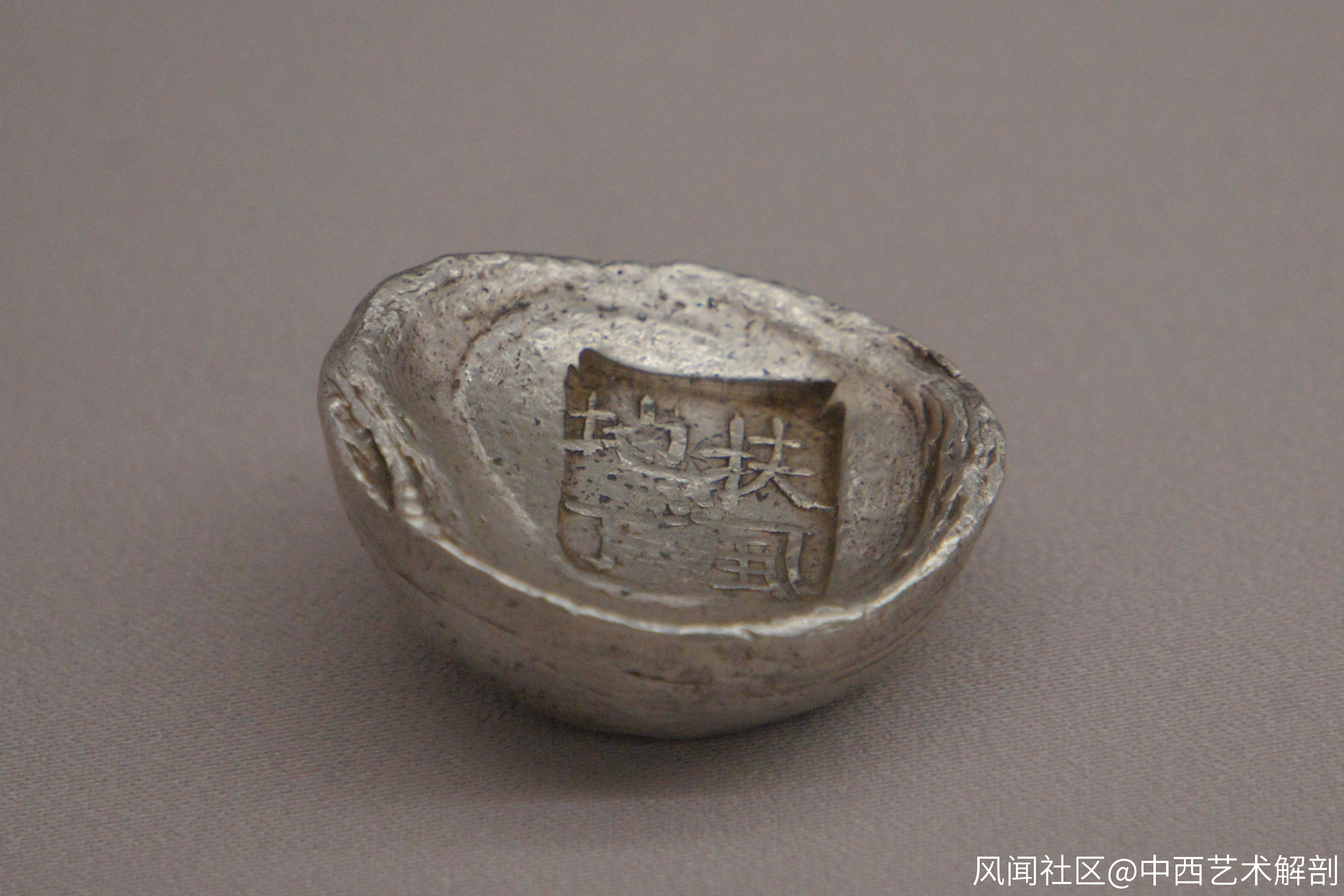這個京銷銀錠啊,那是又扁又寬,顯然解決了船型銀鋌的弊病,中間還像現在的很多香皂一樣凹進去一塊,放得穩、拿得起,真是頂尖的人體工學設計。(手動狗頭)