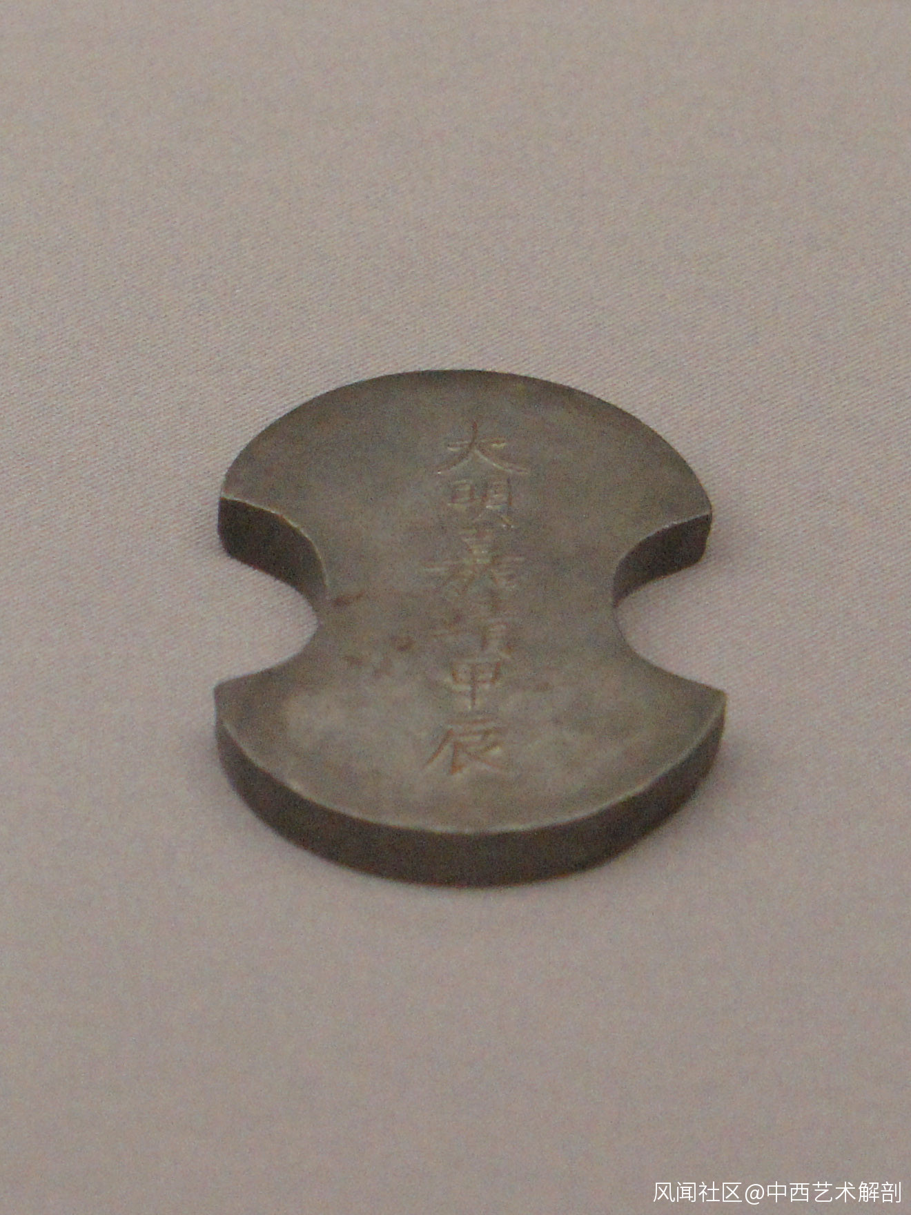 展出的明朝銀錠大多是後期隨意刻字,銘文潦草,與之前元宋銀錠相比,差別很大。在展出的明代銀錠中,只有宮內銀作局的製作堪稱精良。這或許也從側面反映出明代白銀使用的普遍化。
