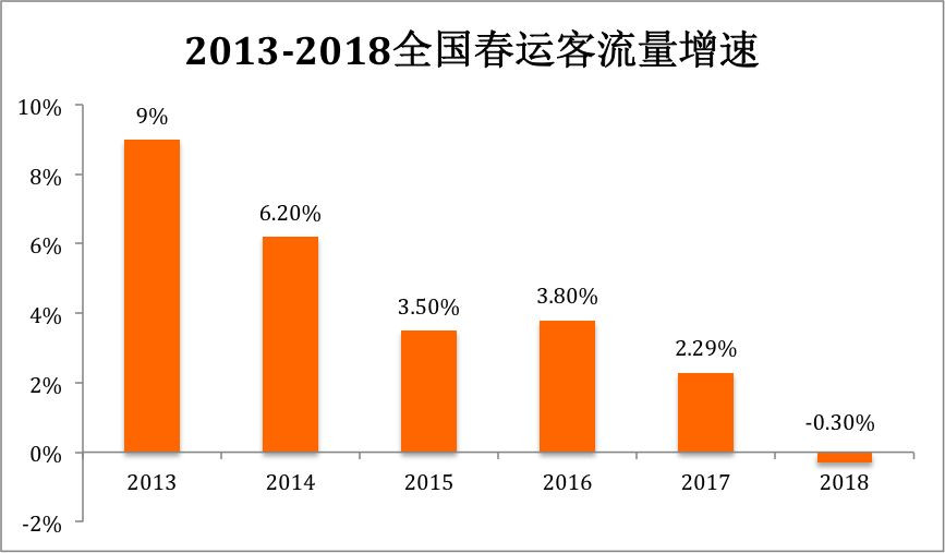 春江水暖鴨先知,流動人口的變化首先反應在春運數據上。2019年春運前20天(1月21日至2月9日),全國累計發送旅客13.95億人次,同比增長0.79%,可以説接近零增長了。