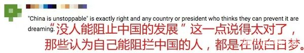 “‘沒人能阻止中國的發展’,這一點説得太對了,那些認為自己能阻攔中國的人,都是在做白日夢。”