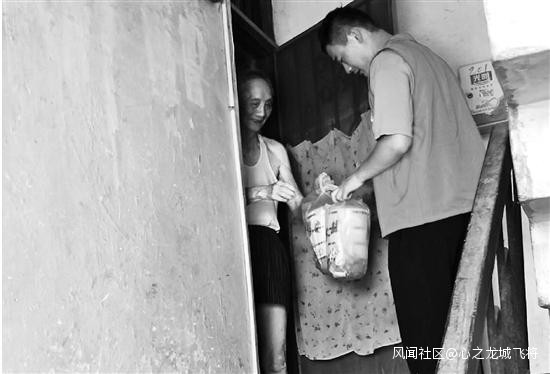 門裏面應了一聲後,一位大伯彎着腰來開門,手裏拿着一個搪瓷杯。把杯子遞出來前,大伯拿起來邊喝邊説:昨天還剩了點,我喝喝掉。任大姐趕快阻止:剩下的不要喝了,會壞肚子,快倒掉,我給你倒新的。