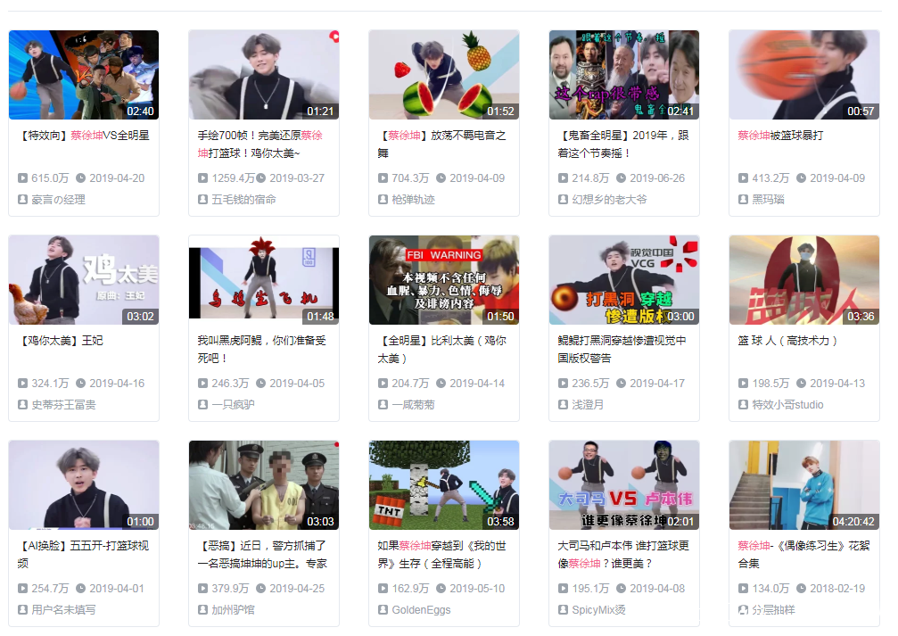 蔡徐坤沒有料到,參加《偶像練習生》時錄製的一段運球視頻,在自己當選NBA新春賀歲大使之後引發了軒然大波。在B站搜索“蔡徐坤”三個字,出現的並不是他的相關作品,而是網友製作的鬼畜搞笑視頻,模仿他運球的視頻幾乎血洗了B站各個角落,甚至連外國網友也樂此不疲。
