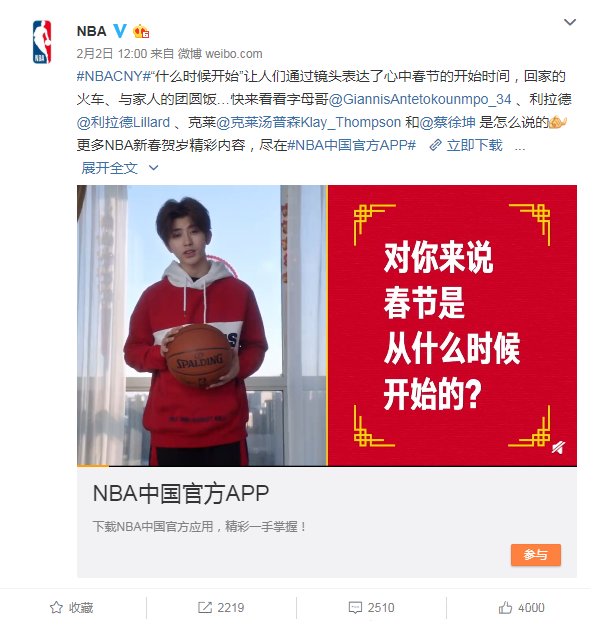 熱度是NBA選中蔡徐坤的主要原因,如今球迷羣體趨近飽和,面對網絡、電視收視率下降的窘境,NBA的推廣陷入瓶頸,急需開闢全新的吸粉渠道。蔡徐坤坐擁2000萬微博粉絲,自帶流量,喜歡他的粉絲大都是年輕女性,這是NBA從未攻克的堡壘,也是一片尚未開發的藍海市場。