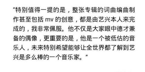 當然對於張藝興音樂製作能力上,一直也都是褒貶不一,當然也有不少音樂製作人都表示對張藝興力挺,例如胡海泉、陳奐仁等,而李榮浩、莫文蔚也找張藝興做過編曲的工作,所以至少在創作能力上,還是有着實力的,而張藝興的這一番感慨似乎也道出了心中的無奈。