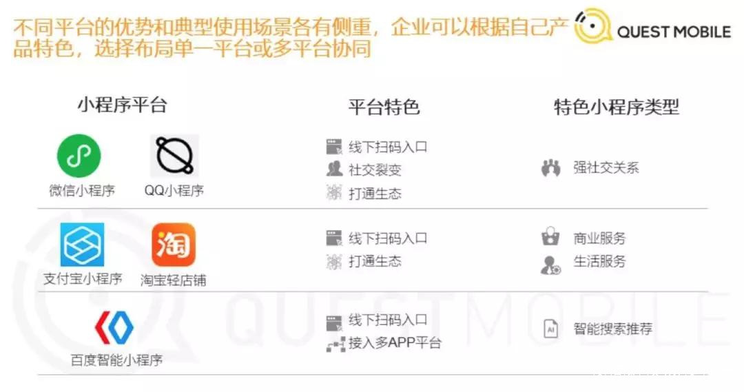 BAT的小程序各具特色,代表了不同的流量獲取來源,以及不同的流量經營方式。