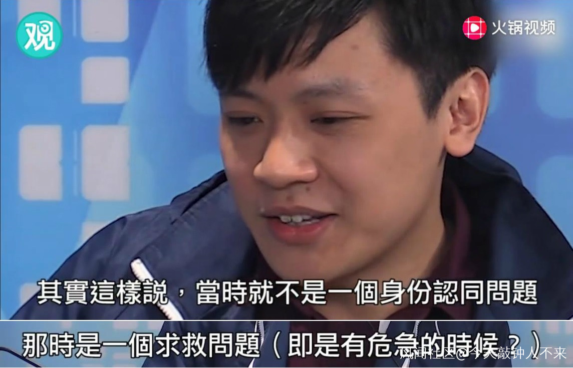 連着支支吾吾了好幾個“這個這個”之後,他終於給自己找到台階下了:“其實這樣説,當時就不是一個身份認同問題,那時是一個求救問題。”