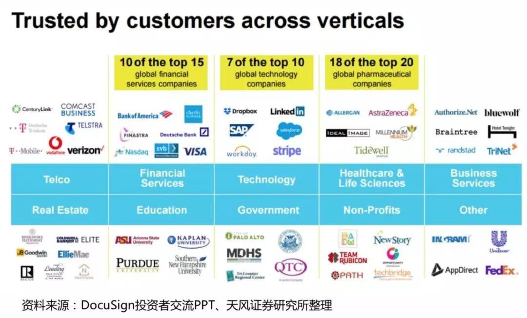 事實上,DocuSign目前被眾多世界級的大型企業廣泛接受和採用,其中全球15家頂尖金融公司中,有10家採用其方案。