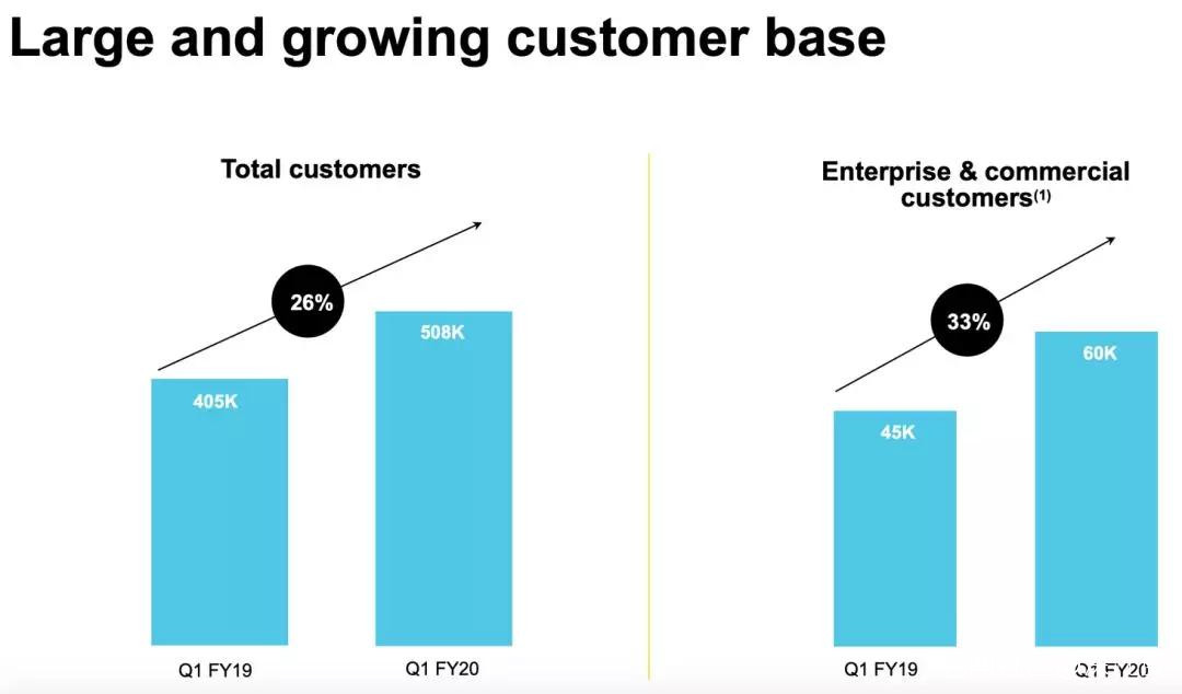 今年4月,DocuSign在財報中透露,今年一季度總收入2.14億美元,同比增長37%。訂閲收入2.015億美元,同比增長36%。預計在未來一年,全球個人用户數的增長將高達26%,而企業客户的增長將高達33%。
