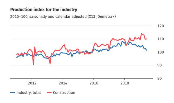 6月份德國工業產出下降1.5% - 5月份小幅下滑0.1%大幅加速 - 遠遠超過分析師預期的下降0.4%。 這是最近令人擔憂的跡象德國經濟 - 歐洲最大的經濟,價值3.9萬億英鎊 - 可能在第二季度進一步萎縮。 如果連續兩個季度出現萎縮,該國將陷入“技術性衰退”。