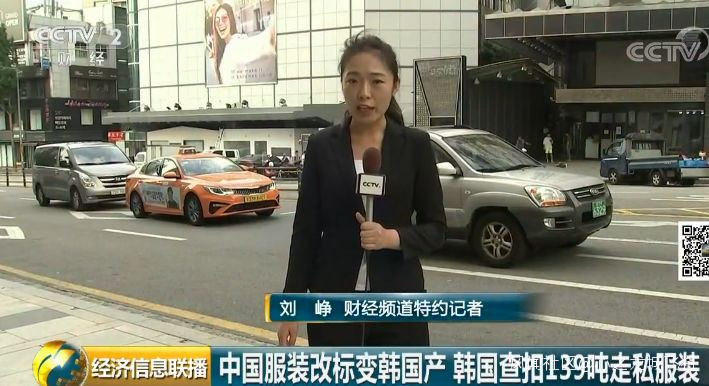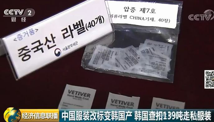 **央視財經頻道特約記者劉崢:**在韓國東大門服裝批發商區,每當夜幕降臨,大量韓國品牌服裝從這裏銷往全球各地。而本次涉案嫌疑人就是在東大門的工作室裏,將從中國低價購入的服裝上的“中國製造”的標籤剪掉,換成“韓國製造”,在並未向海關申報的情況下走私出境,運回中國,並在中國的電商平台上出售。