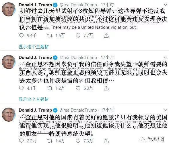 那來聽聽老大哥怎麼説的,特朗普用習慣的推特回應了這件事
