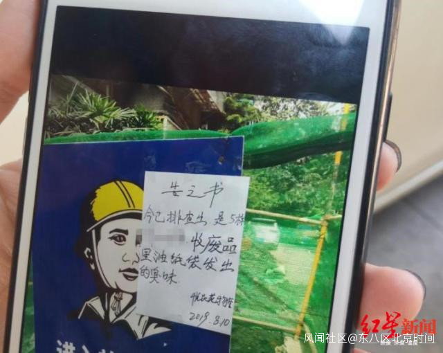 而在小區電纜施工處,紅星新聞記者發現小區物業張貼的一張“告知書”:“今已排查出是5棟2單元*號收廢品裏油紙袋發出的臭味。”落款是8月10日。