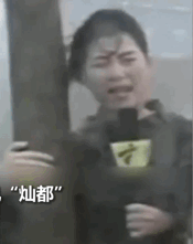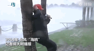女記者抱樹播報