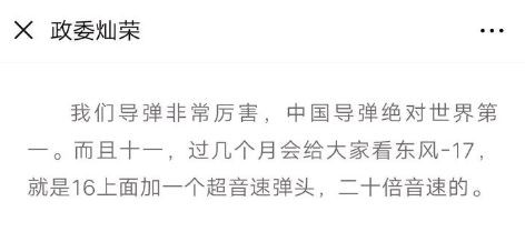 ▲ 著名專家金燦榮曾透露,東風-17會和大家見面(來源:政委燦榮微信公眾號)