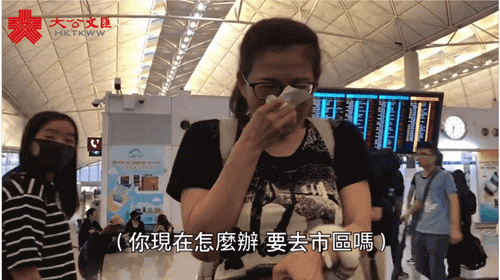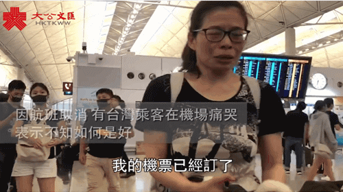 香港特區機場管理局下午時分被迫宣佈取消餘下所有航班,登機服務也被即時暫停。受此影響,大量乘客滯留機場,其中有一位台灣媽媽更是聲淚俱下,表示不知道如何是好。