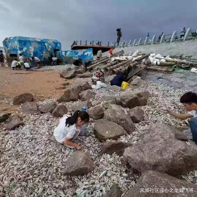 颱風過後青島海灘上全是海鮮 民眾一鏟一麻袋_風聞