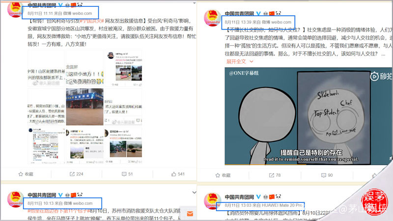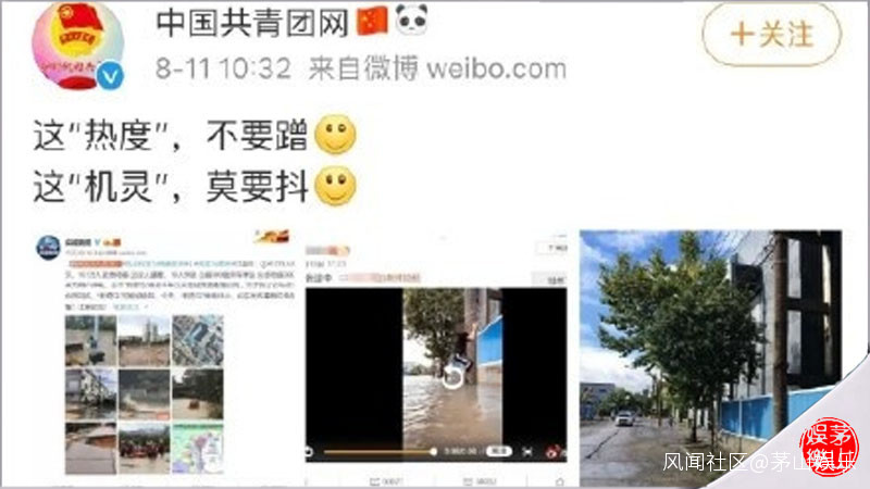 然而,比薛之謙爬上電線杆更“搞笑”的是,先是有粉絲強行説薛之謙抱的是“橋墩”。從上圖能看到所謂的“橋墩”上方,赫然裹着一簇紛亂的電線。接着又有粉絲説薛之謙只是想提醒大家,颱風天出門要注意安全,然而不管是“通告途中”這4個字,還是視頻裏都沒有這層意思。而最為離譜的是,居然有無知的粉絲跑去舉報“中國共青團網官博”是偽冒官微,結果被中國共青團網官博曬截圖打臉。