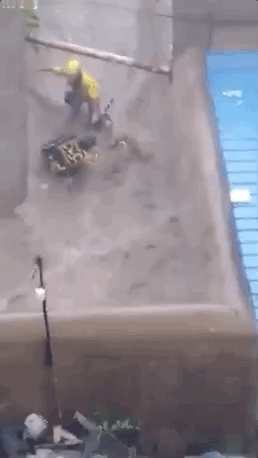 眼看着電動車要被水沖走了,