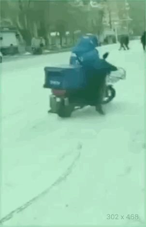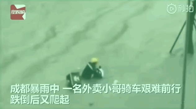 外賣小哥在惡劣天氣裏,