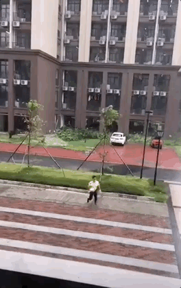 路邊監控拍下的一個外賣小哥的身影,