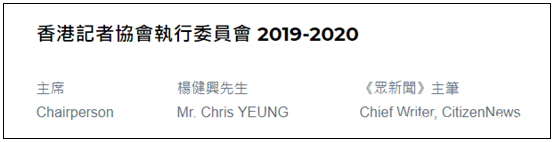 同時,“香港記者協會”的主席楊建興以及他所來自的“眾新聞”,也同樣在報道中持有明顯偏袒暴徒和攻擊警方的立場。