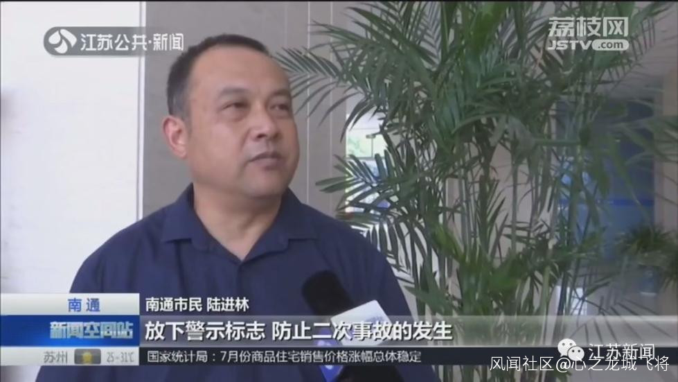 事故車主陸先生事後回憶稱,事故發生後,一輛槽罐車在 前方一公里的地方靠邊停了下來,駕駛員迅速地跑到事故現場,放下警示標誌,防止二次事故的發生。
