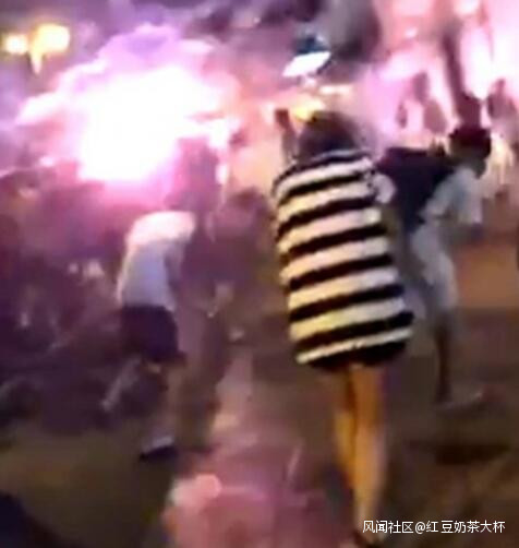 隨後,一輛黑色私家車突然駛至警署,向警署正門及聚集人羣發放多枚煙花。現場傳出多次爆破聲,多人被煙花擊中四散。混亂間,一名警長從警署內走出,將一名因煙花襲擊跌倒的示威者拉入警署,又詢問在場市民“有沒有事?”在場示威者高呼要求警員“抓人”。