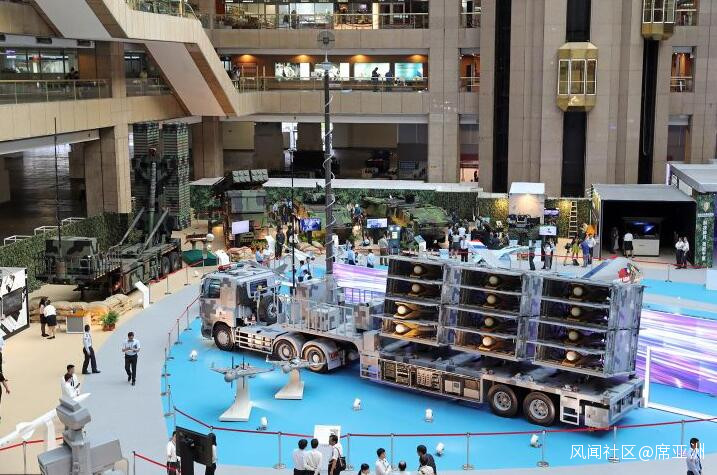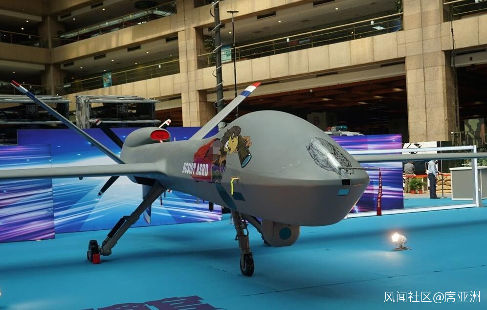 一個能被一鏡收入的航太展……也是很歡樂了,我們可以看到最左邊是天弓3、過去是雷霆2000、過去是雲豹甲車,前景是“中山科學院”開發的反輻射無人機,反輻射無人機後面是無人機
