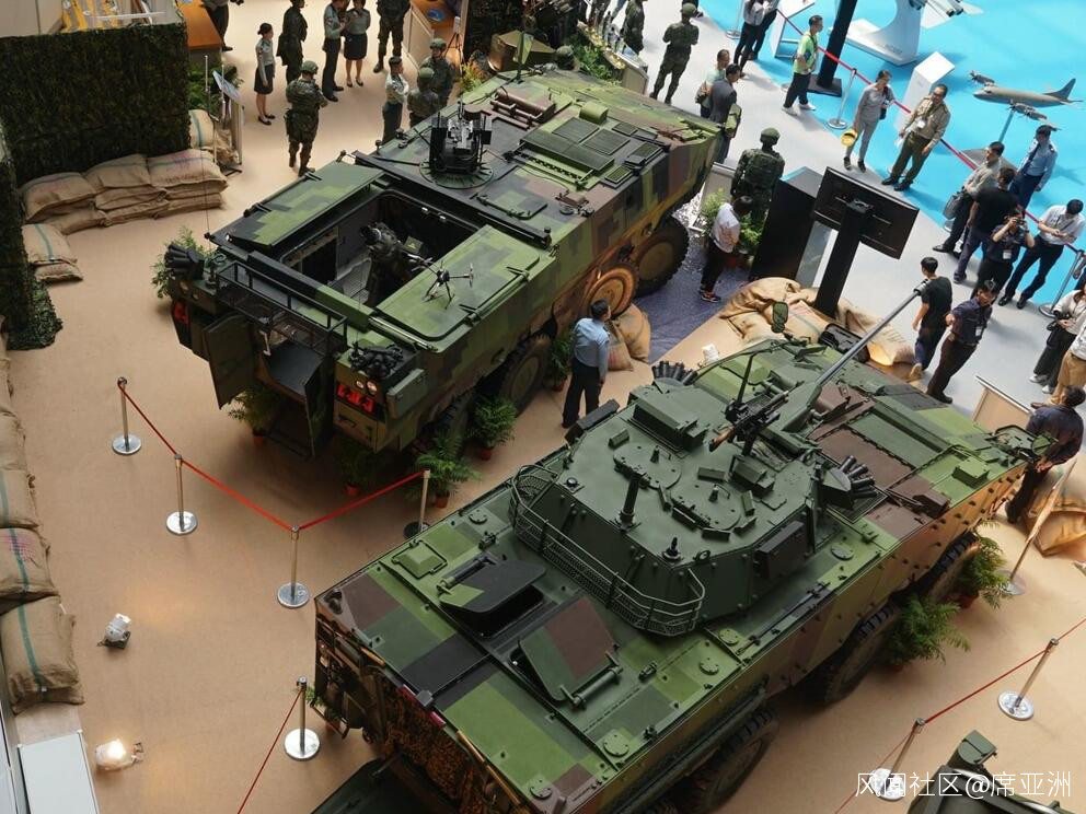 本屆航太展上比較亮點的展品,“雲豹2”步兵戰車, 該車的行動系統進行了重新設計,從設計配置上將要優於解放軍ZBL-08系列車族,當然了,實際上因為台灣汽車工業的水平問題,實際性能上……可能未必對得起它的設計配置。該車的武器是引進的美國30毫米“大毒蛇”機關炮,該車因此終於具備了可以擊穿解放軍裝甲車的能力,不容易,不容易