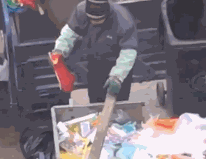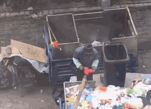 視頻中,一個清潔工大叔像往常一樣,在認真清理着垃圾。
