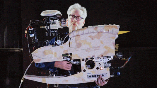 最近亞當還完成了另一個長期項目,那就是還原了《第五元素》裏大反派索克手裏的高科技武器,可以發射火箭彈、火焰、冰凍噴霧、弩箭、網兜,還可以自動跟蹤目標的“要你命3000” ZF1槍。