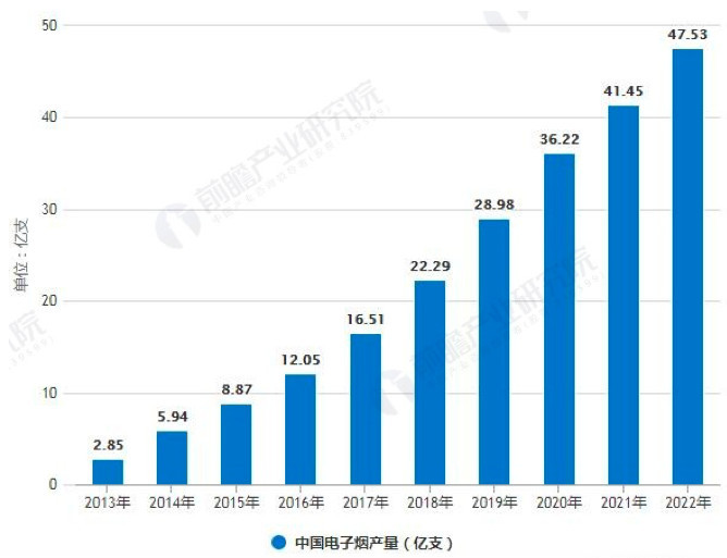 根據中商產業研究院發佈的數據資料顯示,2017年中國電子煙產量約為16億支,2018年有望突破22億支。目前,電子煙市場在國內已形成一條完整的產業鏈,在企查查上面搜索關鍵詞“電子煙”,顯示有147925家相關公司,註冊資本從50萬到幾千萬不等。