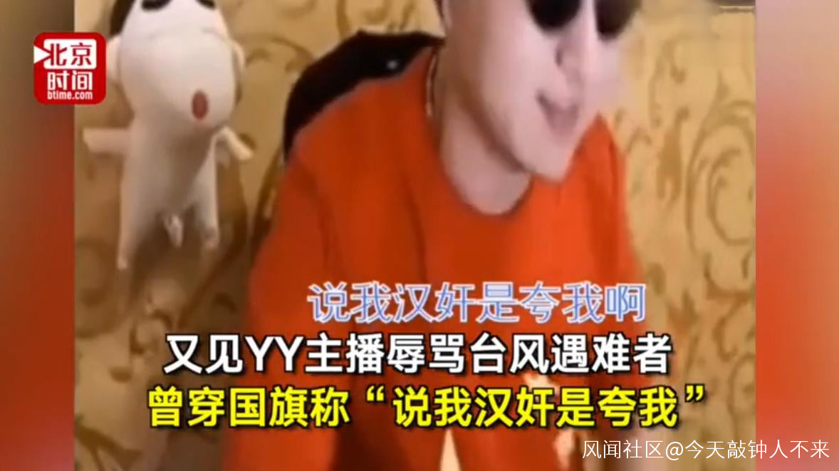 直播辱罵颱風遇難者 曾穿國旗稱“説我漢奸是誇我”_風聞